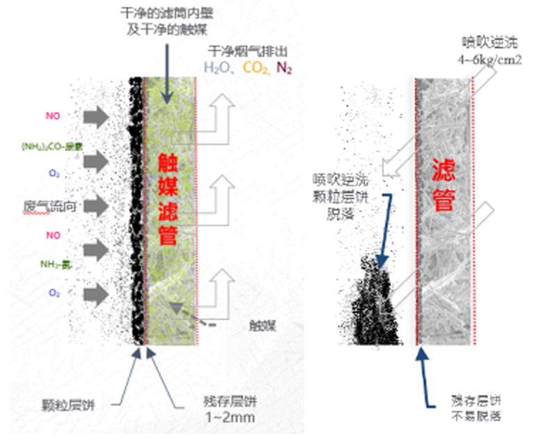 图2 陶瓷催化虑管工作原理 图3 陶瓷催化虑管反吹清灰