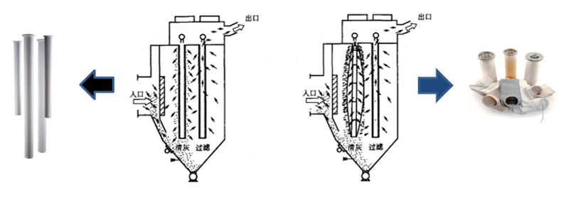 图5 陶瓷催化虑管与传统布袋除尘对比