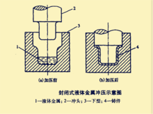 如右下图所示为另一种液体金属冲压,在冲压终了时,型内金属处于封闭的型腔