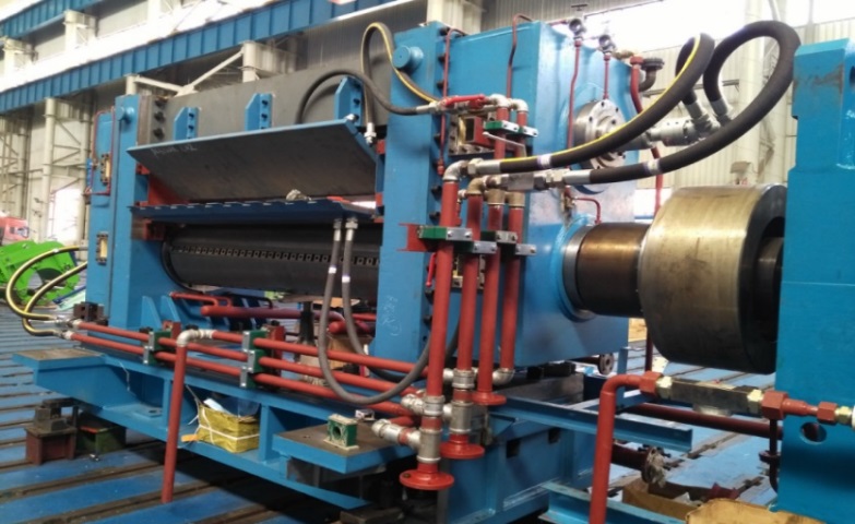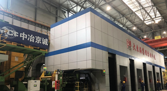 当时国内尚无适用铸轧线的飞剪装备,面对这一挑战,中冶京诚飞剪装备研发小组于2016年底开发了一套适合超薄带铸轧工艺的复合型大厚比双剪刃启停式板带飞剪,2017年5月制造验收完毕,直接投入到沙钢CASTRIP短流程铸轧项目中(图5.2)。2018年7月,沙钢超薄带生产线首次实现了7炉连浇,达到了和美国纽柯钢铁生产线同等水平,同时产品合格率、成材率等重要指标都有了明显提升。江苏沙钢集团有限公司总经理施一新说:“超薄带生产线可以稳定生产厚度在0.7~1.9毫米之间的薄板,这已经接近冷轧板的厚度,且生产流程更短,生产成本更低,必将带来广阔的‘蓝海’市场。”超短的流程工艺还大幅降低生产总能耗,生产能耗仅为传统热连轧工艺的五分之一,二氧化碳排放量减少了四分之三,无论是经济效益还是社会效益,对于沙钢乃至中国钢铁的转型升级都意义非凡。