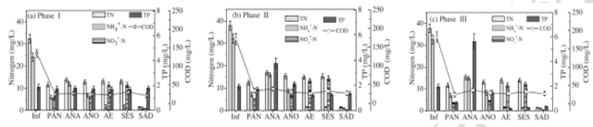 图2:不同条件下各反应区污染物变化趋势