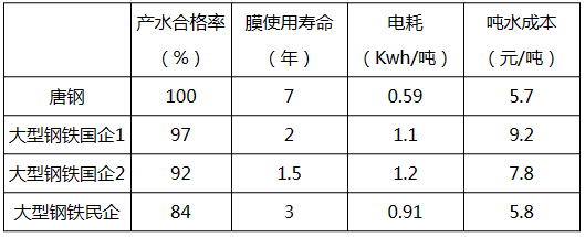 表1:唐钢与水质相近企业对标