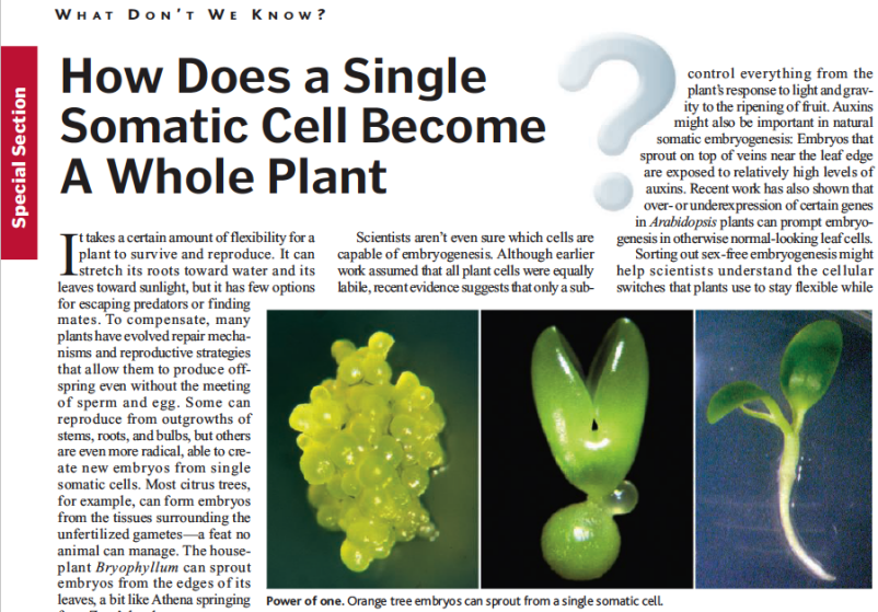[12] Vogel G. How Does a Single Somatic Cell Become a Whole Plant[J]? Science, 2005, 309: 86-86
