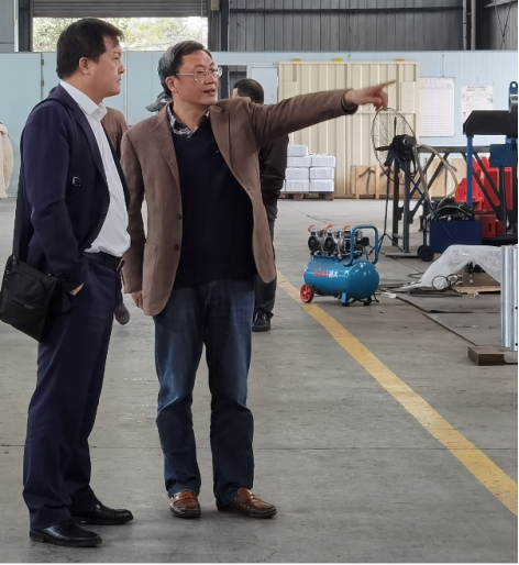 图1 吕其兵教授(右)向中国铁建领导介绍焊接装备技术