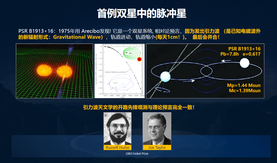 基于新发现的脉冲星,科研人员可以做各种各样的物理研究,比如说相对论理论的检验。科研人员观测到一颗脉冲星处于相伴天体后方时,受后方伴星的强引力场影响,脉冲到达时间会出现延迟,即“夏皮罗延迟”, FAST 能够测量到这一现象,且测量精度极高。我们已经测量了 6 例。