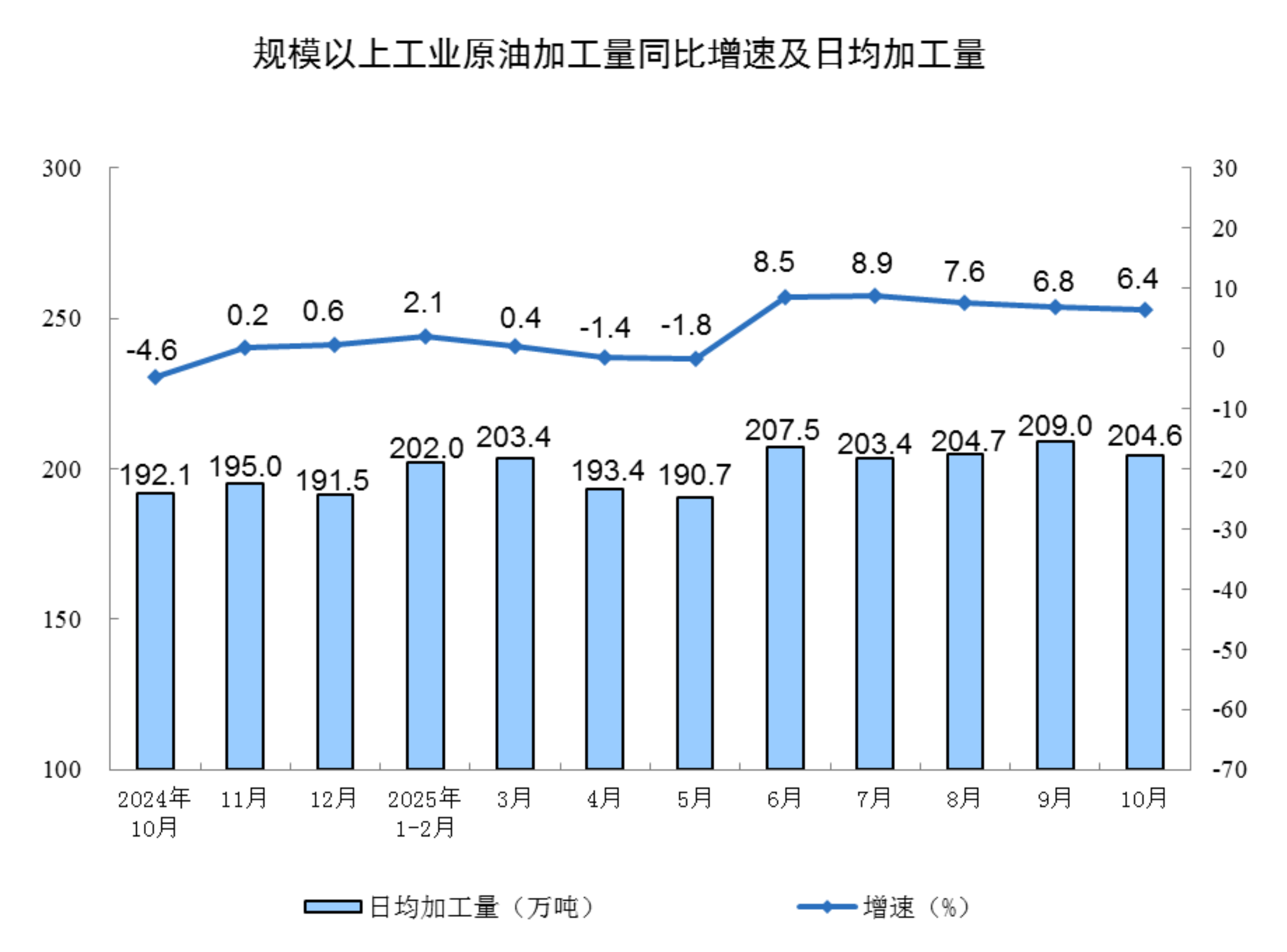 原油加工量(万吨) | 6343 | 6.4 | 61424 | 4.0 |