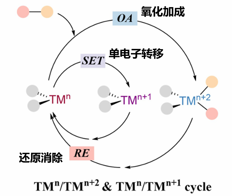 过渡金属参与的单电子/双电子氧化还原催化循环