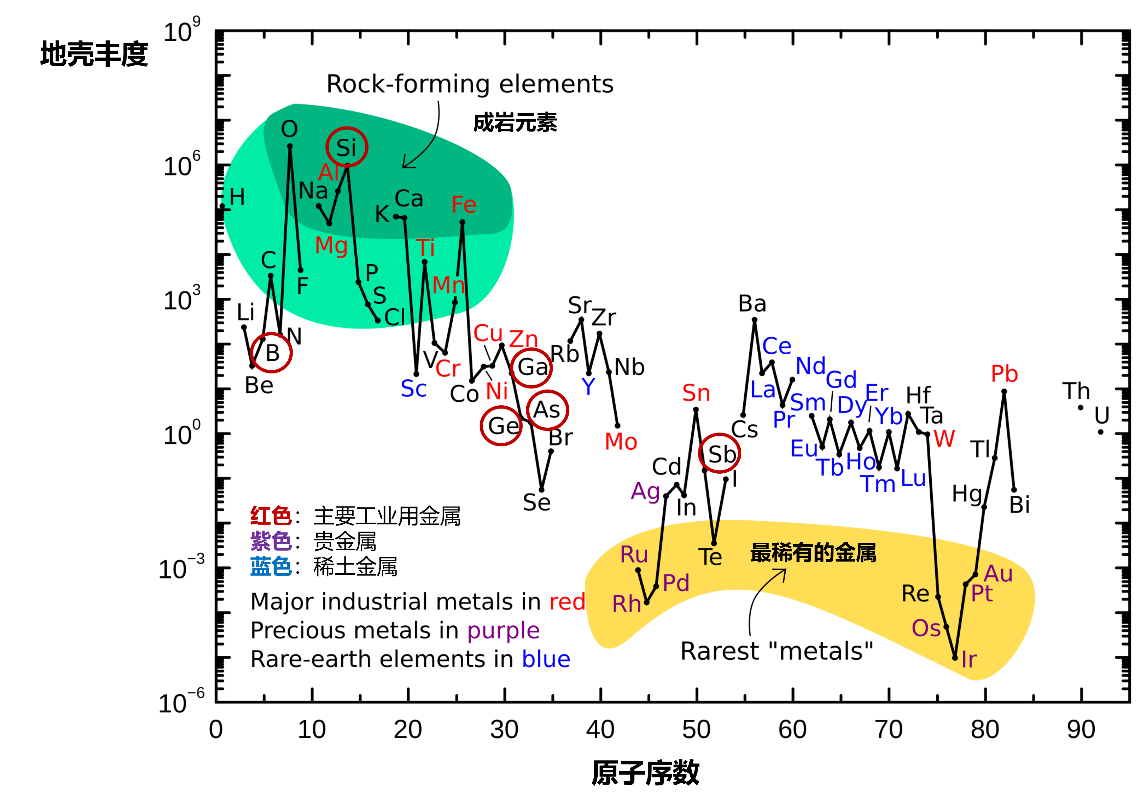 地球上大陆地壳中化学元素的丰度