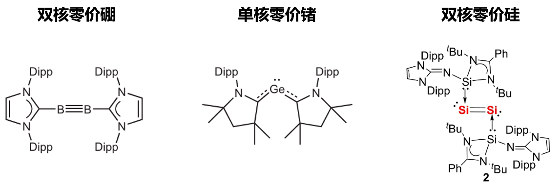部分代表性的零价态准金属络合物