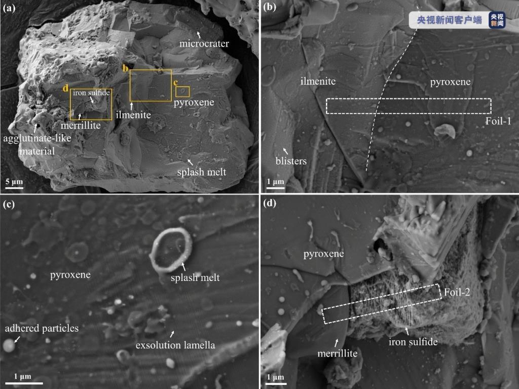 中国科学院地质与地球物理研究所科研团队联合北京高压科学中心、中科院国家空间科学中心的科研人员,获得了单个嫦娥五号月壤颗粒表面的硅酸盐、氧化物、磷酸盐和硫化物的太空风化作用信息。